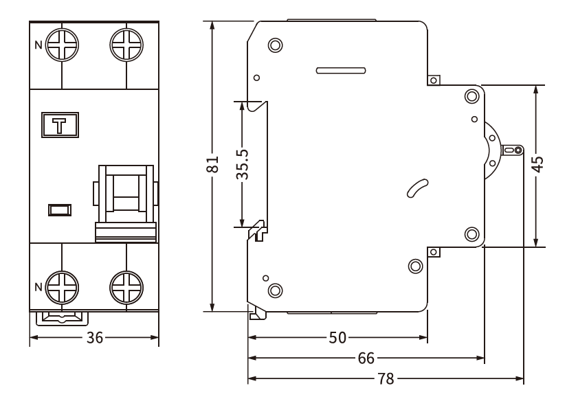 Design compact: CAL3-40S RCBO est conçu pour être compact, avec seulement deux largeurs de module dans un panneau électrique, ce qui les rend adaptés à divers environnements d'installation.